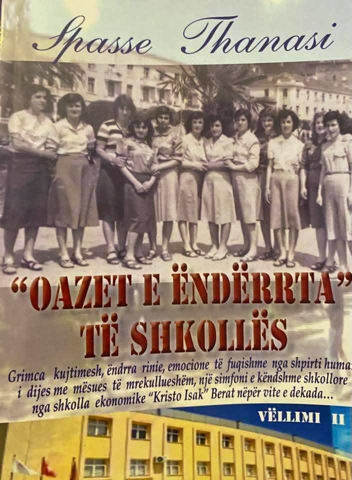 Përmes shumë përjetimeve nga blloqet e kujtimeve nga shkolla e mesme ekonomike “Kristo Isak” në Berat , nga ritakimi i shokëve e shoqeve dhe emocioni nga fotografitë e bukura të shkollës, botova dhe vëllimin e dytë të kujtimeve tona : ” OAZET E ËNDËRRTA TË SHKOLLËS” ( 2025 ). Një libër i bukur prej 361 faqe ku rrezaton ndër breza nxënësish shkolla jonë ekonomike me ngjarje e përvoja të vyera, me motive e dëshira që u mëkuan nëpër vite nga mësues finjitoz që na dhanë të gjithëve në zemër respektin e modelit për tu përgatitur për jetën.