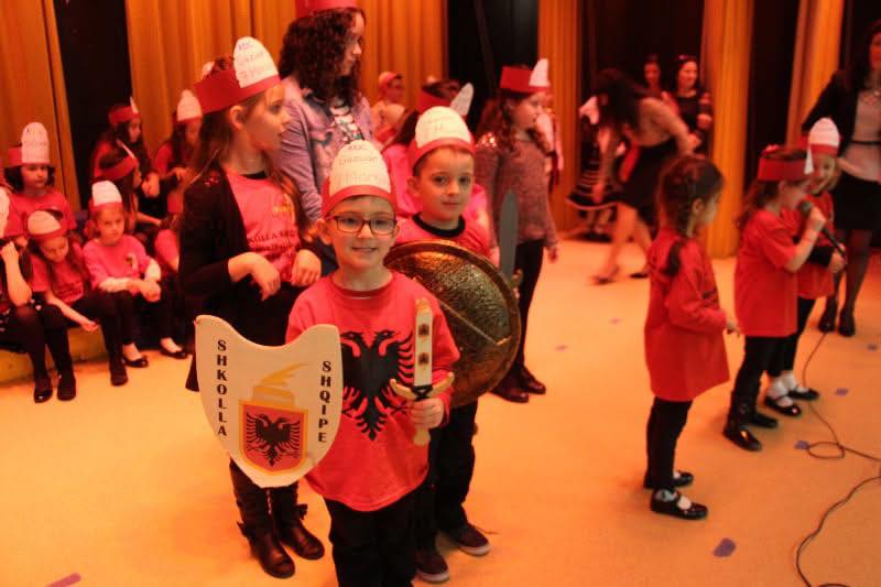 Poezinë për fëmijë: “Shpata e Skënderbeut” mësuesja e tyre dr.Valbona e ndau sipas nxënësve në strofa, ku secili prej tyre duket sikur bisedon me Skënderbeun në kalë. I pari që e fillon interpretimin është Rilind Bardhi një djalë inteligjent 4 vjeç i cili thotë: Një fëmijë afrohet/ dhe zë flet ca fjalë/- Xhaxhi Skënderbe/ merrmë pak mbi kalë! I dyti është Naim Kasneci, plot buzëqeshje fëminore që vazhdon: Vetë s’mund të ngjitem/ vetë s’mund ta ngas/ po me ty unë dua/ rrufeve t’u flas. Të tretat janë dy vajzat simpatike Julinda dhe Rozafa Dimnaku me baba shqiptar dhe nënë turke të cilat vazhdojnë: Merrmë “hop” mbi kalë